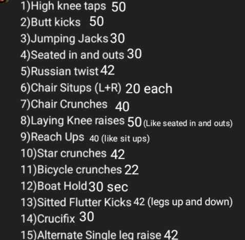 Also add 30 Mountain Climbers and 30 Leg Skiers to the end of that list. Hopefully I can accomplish all of this and lose weight and gain muscle.
